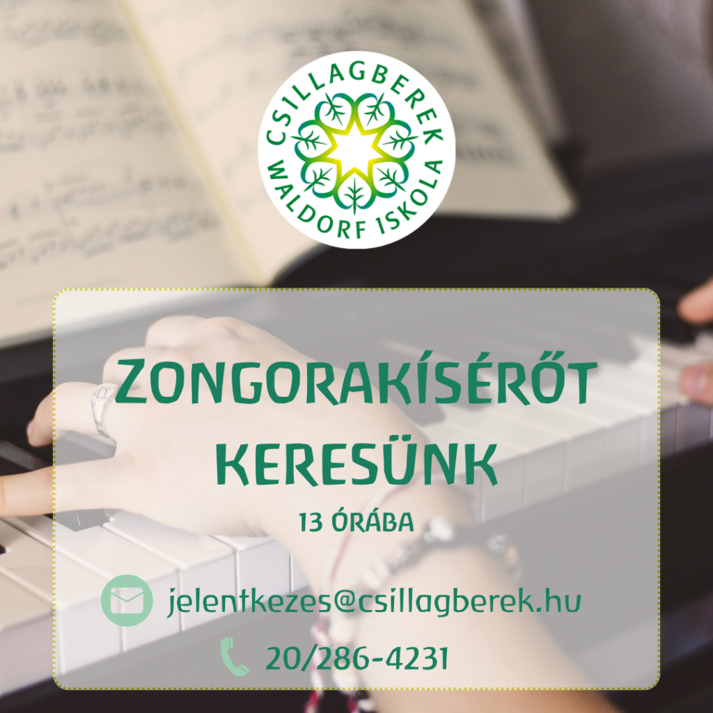 A Csillagberek Waldorf Iskola zongorakísérőt keres az euritmia órákra heti 13 órában.